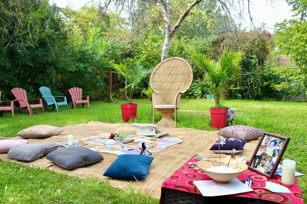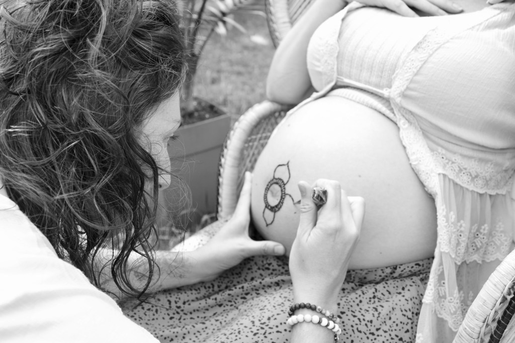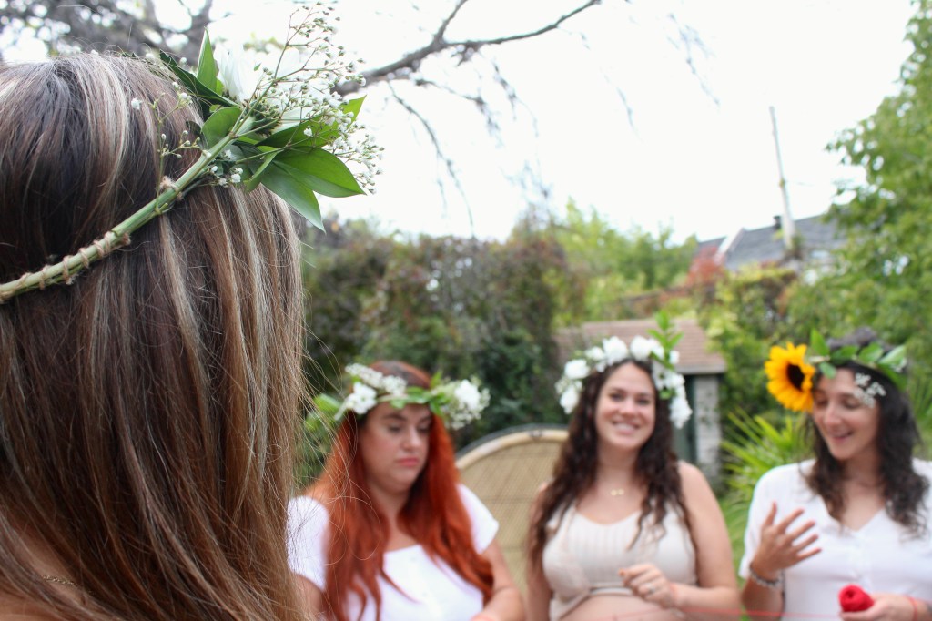 Nous avons fait du henné, des couronnes de fleurs, choisi des pierres avec des propriétés différentes pour l’accueil du bébé, tiré des cartes d’oracle et le tout s’est déroulé à l’extérieur un après-midi ensoleillé du mois septembre!